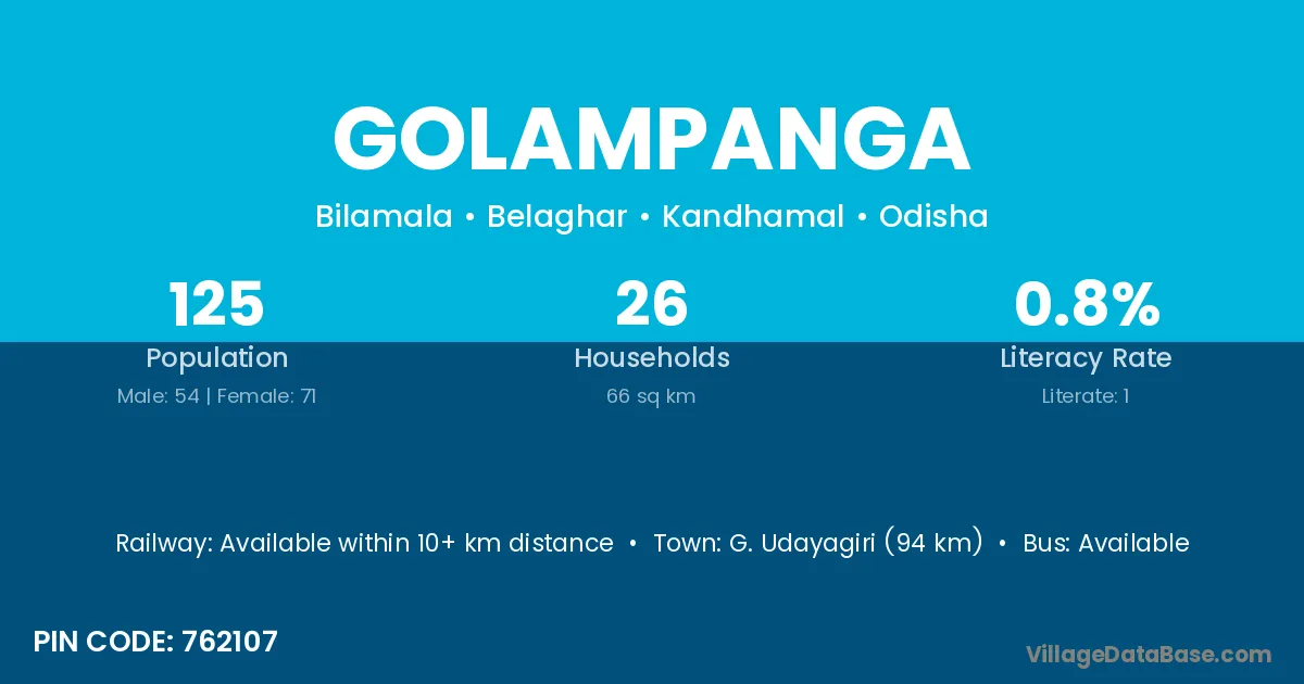 G. Udayagiri (94 km) is the nearest town to Golampanga village for major economic activities and is located approximately 94 km away.