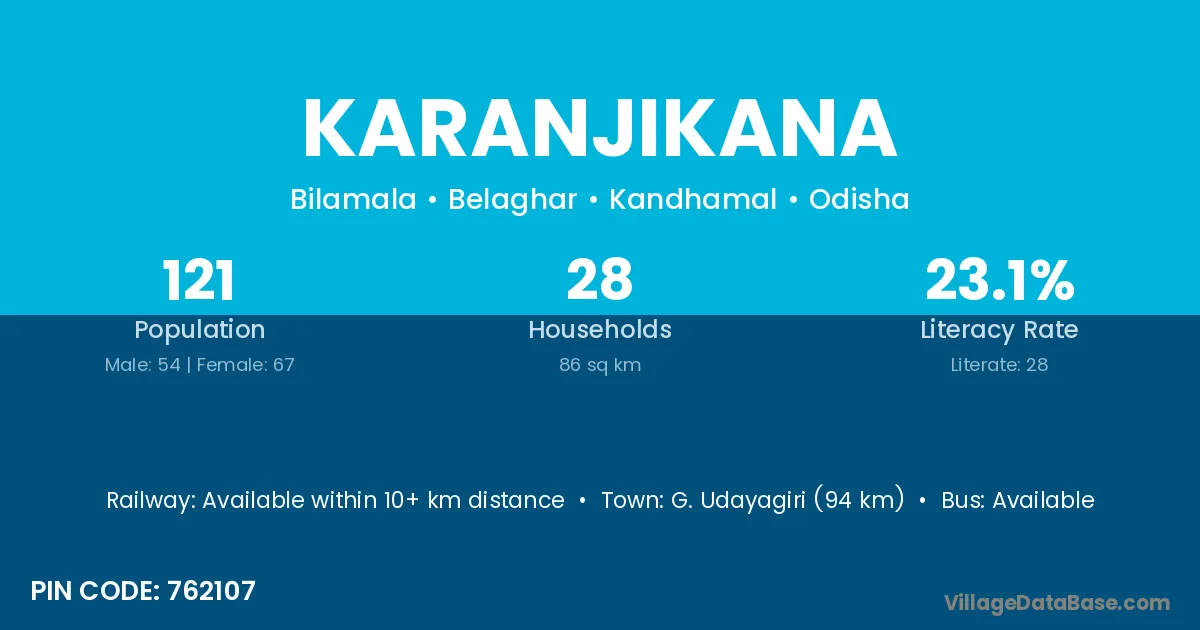Karanjikana village has a total population of 121 people, of which 54 are males and 67 are females.