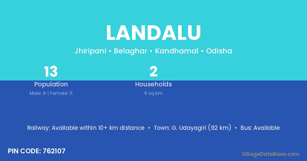 Landalu village has a total population of 13 people, of which 8 are males and 5 are females.