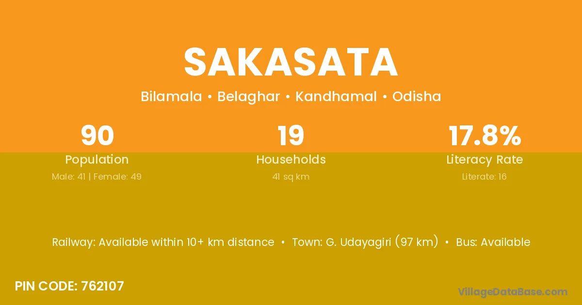 G. Udayagiri (97 km) is the nearest town to Sakasata village for major economic activities and is located approximately 97 km away.