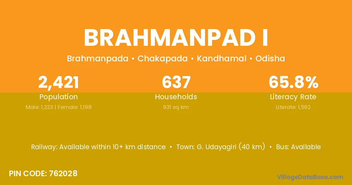 G. Udayagiri (40 km) is the nearest town to Brahmanpad I village for major economic activities and is located approximately 40 km away.