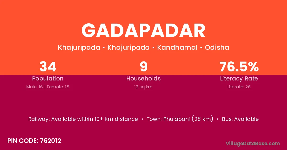 G. Udayagiri (51 km) is the nearest town to Gadapadar village for major economic activities and is located approximately 51 km away.