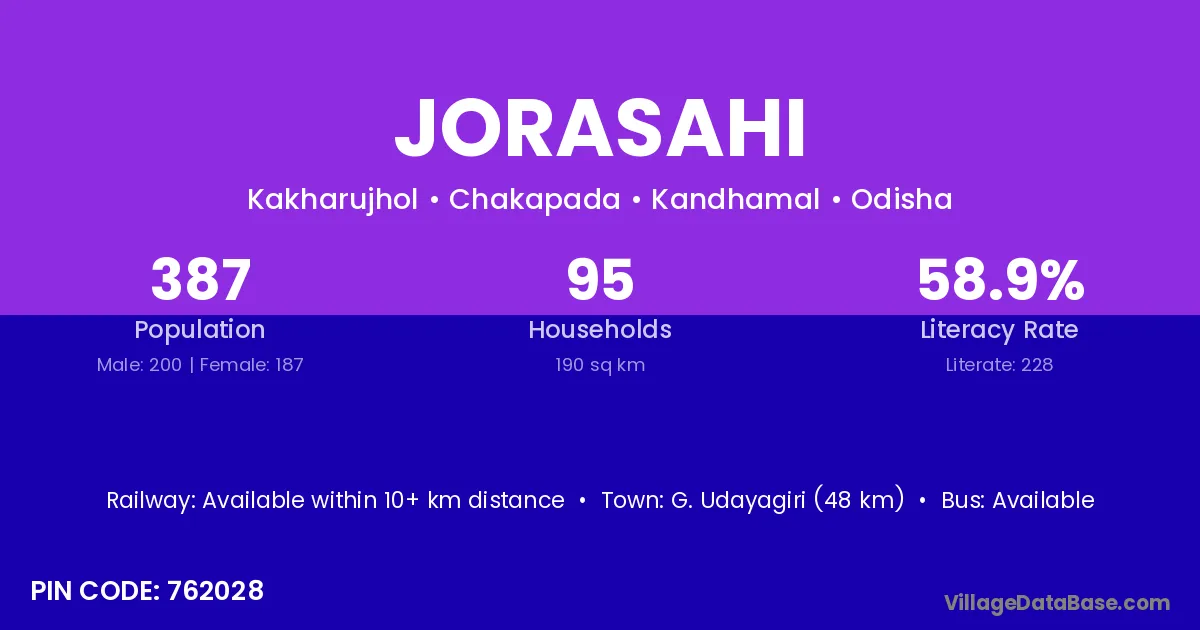 G. Udayagiri (48 km) is the nearest town to Jorasahi village for major economic activities and is located approximately 48 km away.