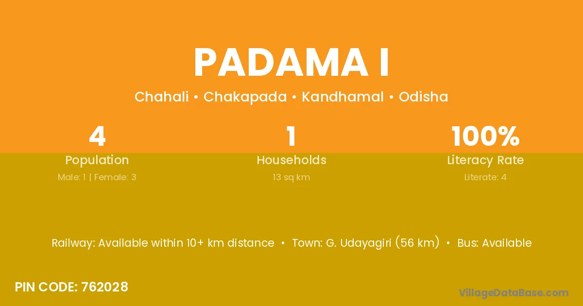 Padama I village is located in the Chakapada Tehsil of the Kandhamal district in Odisha .