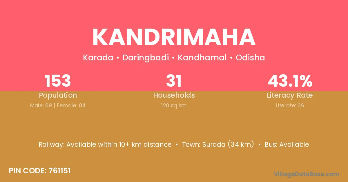 Kandrimaha village has a total population of 153 people, of which 69 are males and 84 are females.