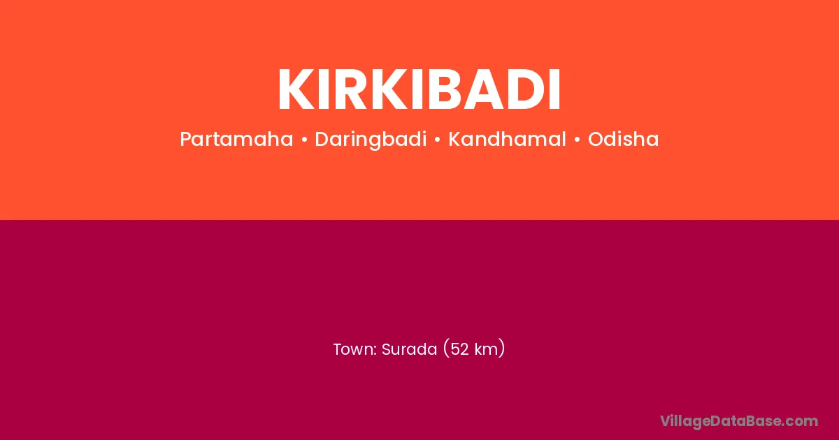 Surada (52 km) is the nearest town to Kirkibadi village for major economic activities and is located approximately 52 km away.