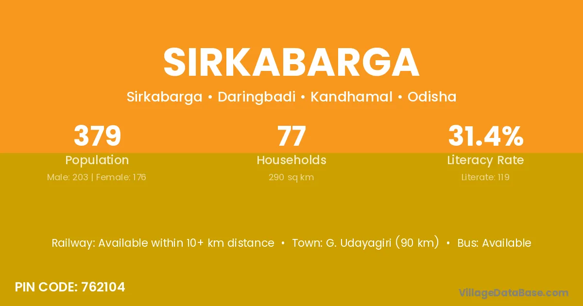 Sirkabarga village is located in the Daringbadi Tehsil of the Kandhamal district in Odisha .