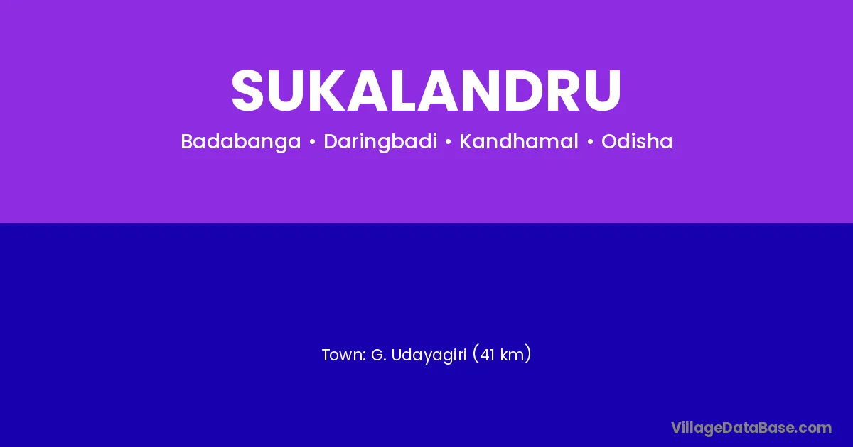 Sukalandru village is located in the Daringbadi Tehsil of the Kandhamal district in Odisha .