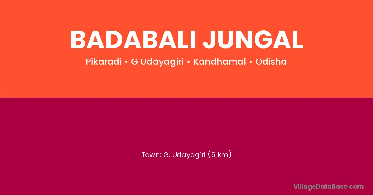 G. Udayagiri (5 km) is the nearest town to Badabali Jungal village for major economic activities and is located approximately 5 km away.