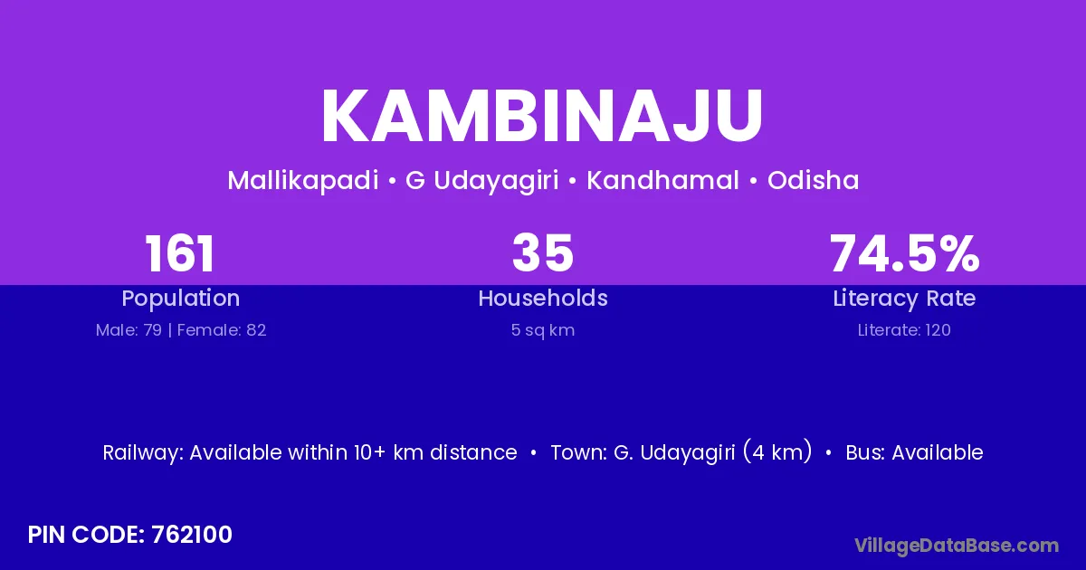 G. Udayagiri (4 km) is the nearest town to Kambinaju village for major economic activities and is located approximately 4 km away.