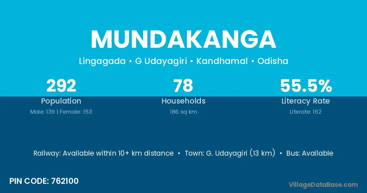 G. Udayagiri (13 km) is the nearest town to Mundakanga village for major economic activities and is located approximately 13 km away.