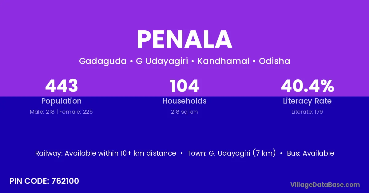 Penala village is located in the G Udayagiri Tehsil of the Kandhamal district in Odisha .