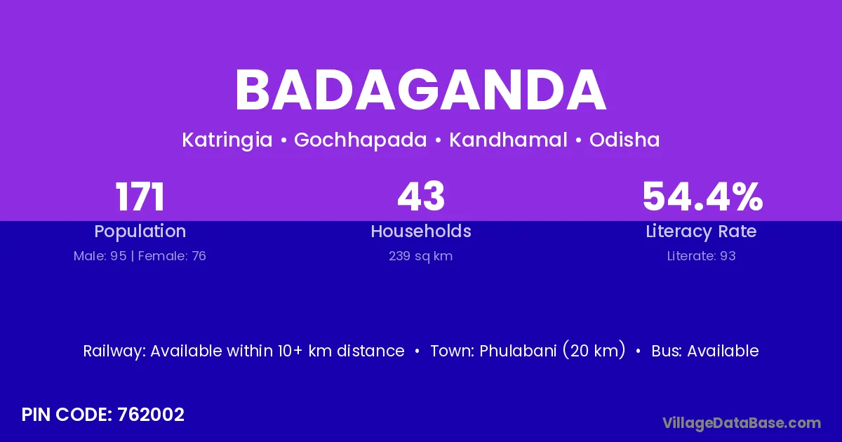 Phulabani (20 km) is the nearest town to Badaganda village for major economic activities and is located approximately 20 km away.