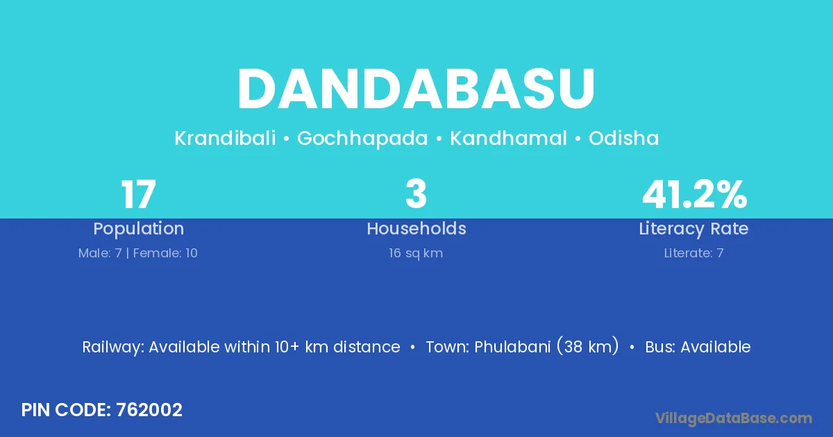 Phulabani (38 km) is the nearest town to Dandabasu village for major economic activities and is located approximately 38 km away.