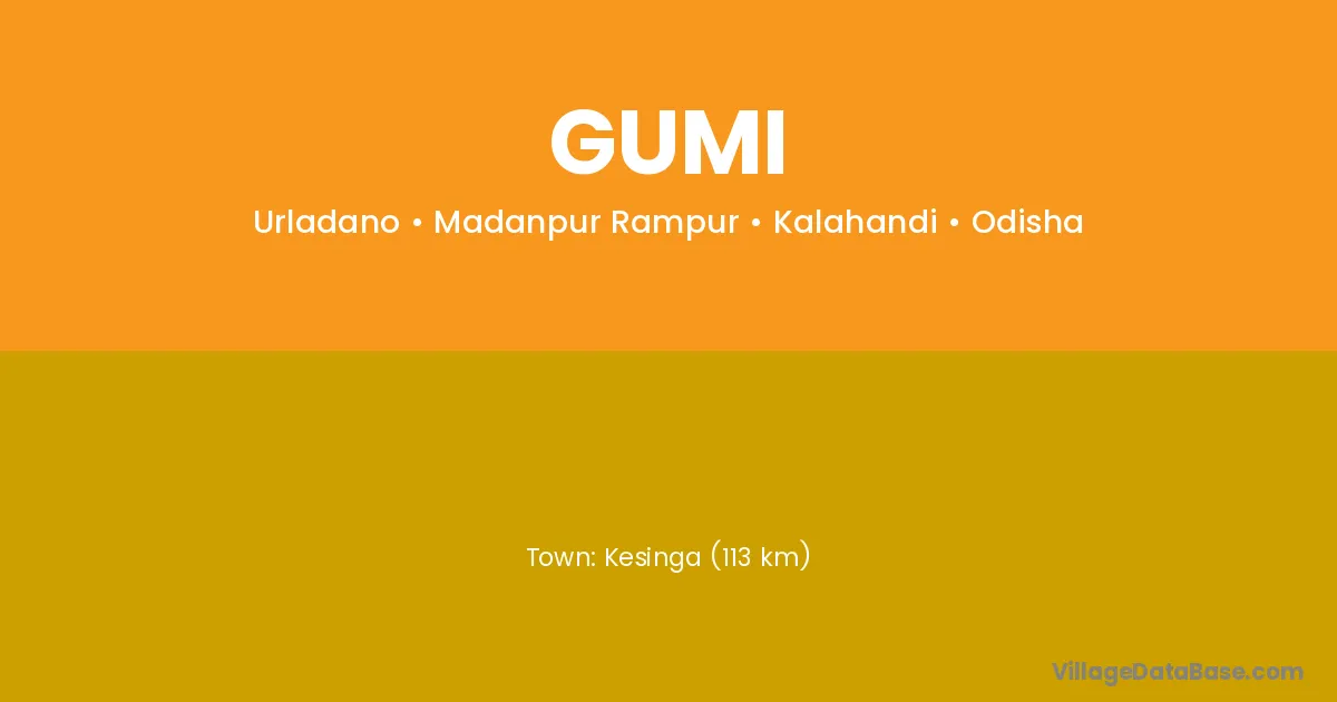 Phulabani (20 km) is the nearest town to Gumi village for major economic activities and is located approximately 20 km away.