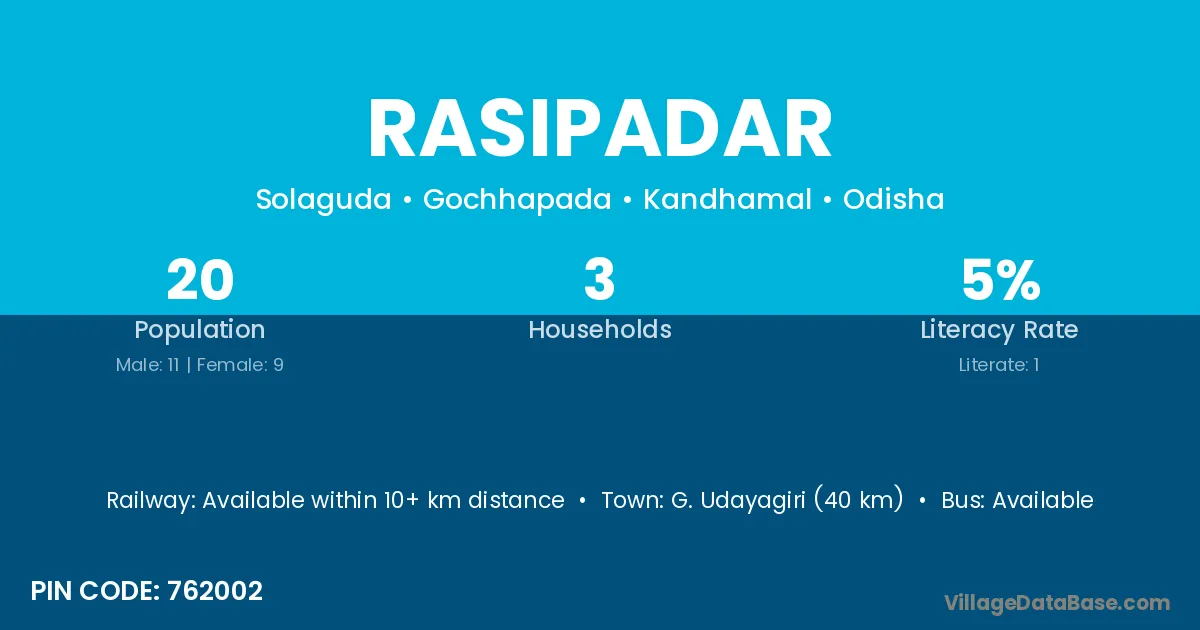 G. Udayagiri (40 km) is the nearest town to Rasipadar village for major economic activities and is located approximately 40 km away.