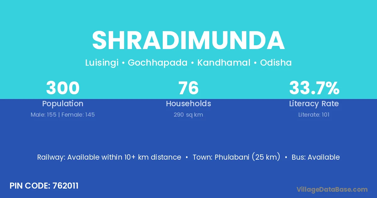Phulabani (25 km) is the nearest town to Shradimunda village for major economic activities and is located approximately 25 km away.