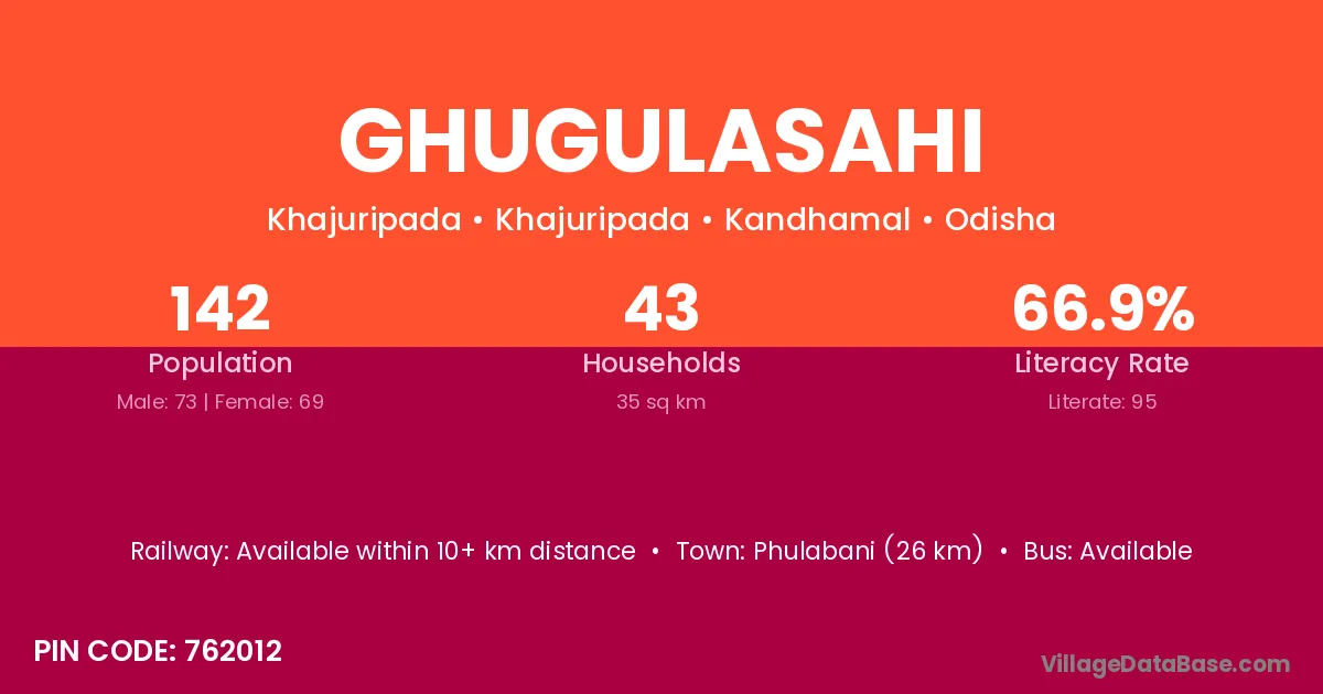 Phulabani (26 km) is the nearest town to Ghugulasahi village for major economic activities and is located approximately 26 km away.