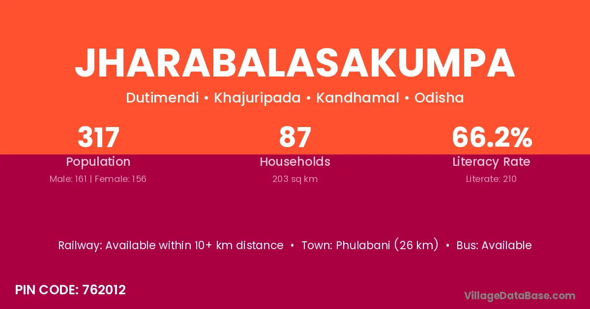 Phulabani (26 km) is the nearest town to Jharabalasakumpa village for major economic activities and is located approximately 26 km away.