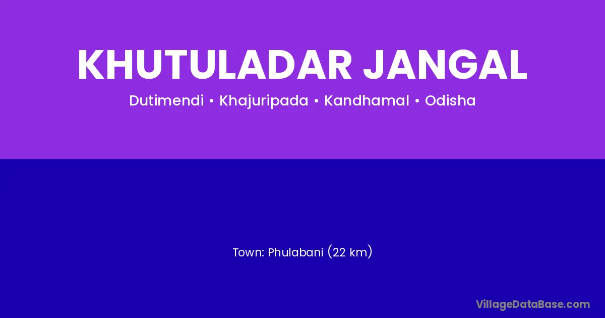 Phulabani (22 km) is the nearest town to Khutuladar Jangal village for major economic activities and is located approximately 22 km away.