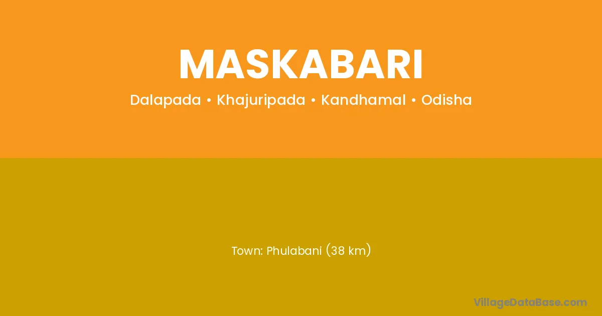 Phulabani (38 km) is the nearest town to Maskabari village for major economic activities and is located approximately 38 km away.