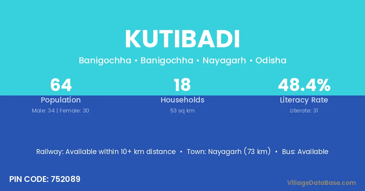Phulabani (62 km) is the nearest town to Kutibadi village for major economic activities and is located approximately 62 km away.