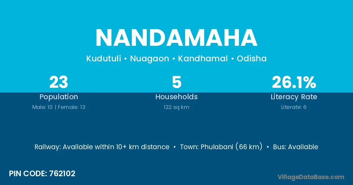 Phulabani (66 km) is the nearest town to Nandamaha village for major economic activities and is located approximately 66 km away.