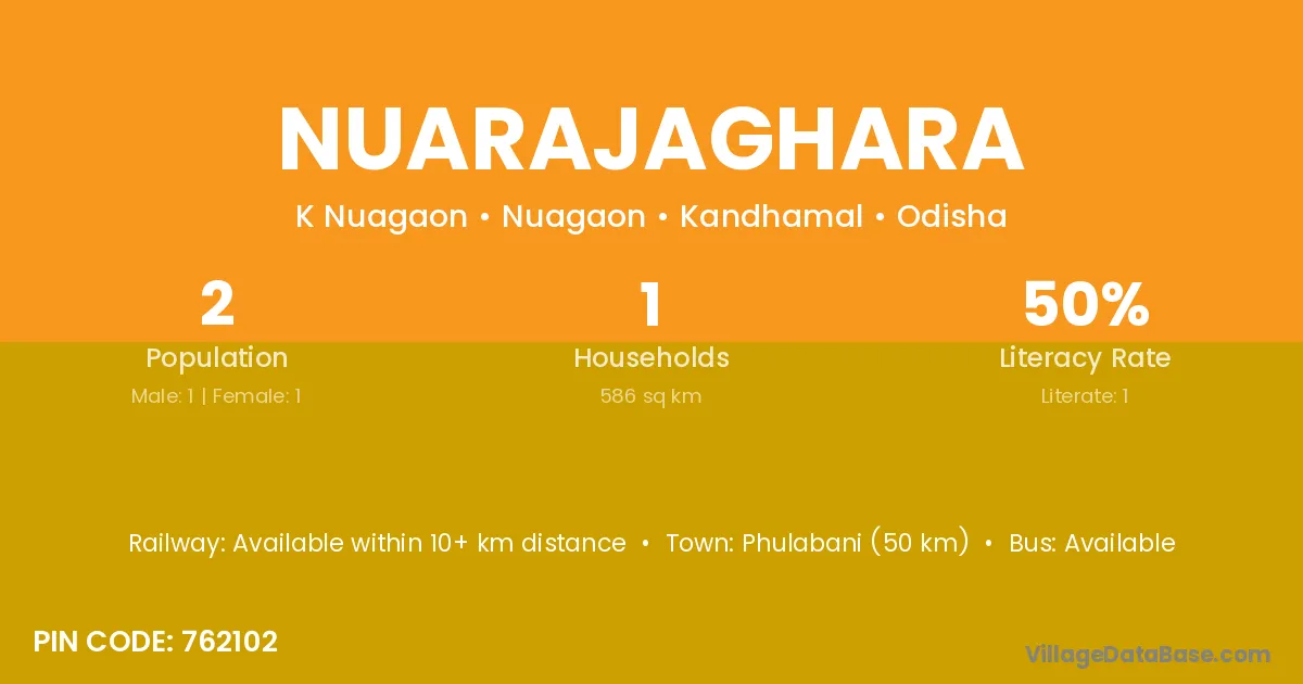 Phulabani (50 km) is the nearest town to Nuarajaghara village for major economic activities and is located approximately 50 km away.
