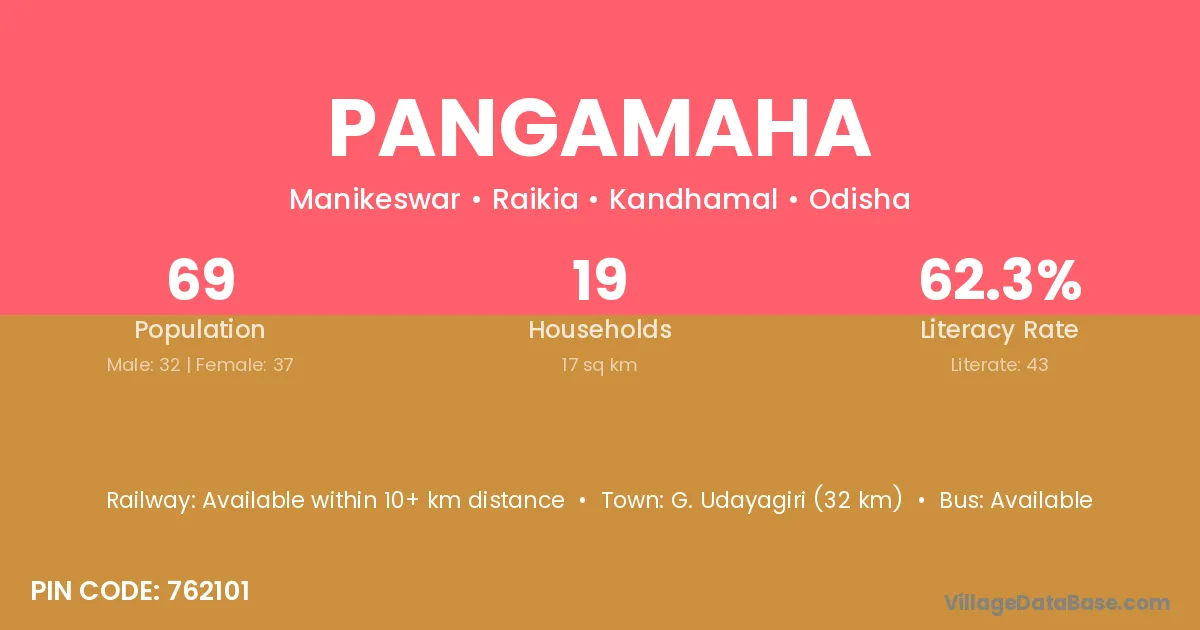 Phulabani (33 km) is the nearest town to Pangamaha village for major economic activities and is located approximately 33 km away.
