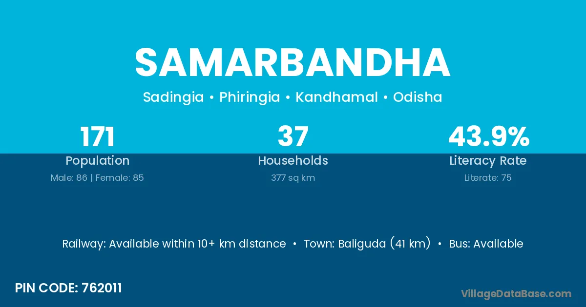 Baliguda (41 km) is the nearest town to Samarbandha village for major economic activities and is located approximately 41 km away.