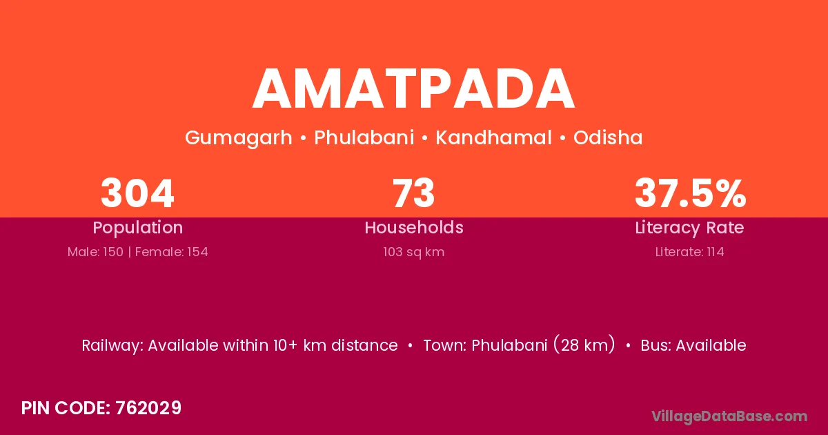 Phulabani (28 km) is the nearest town to Amatpada village for major economic activities and is located approximately 28 km away.