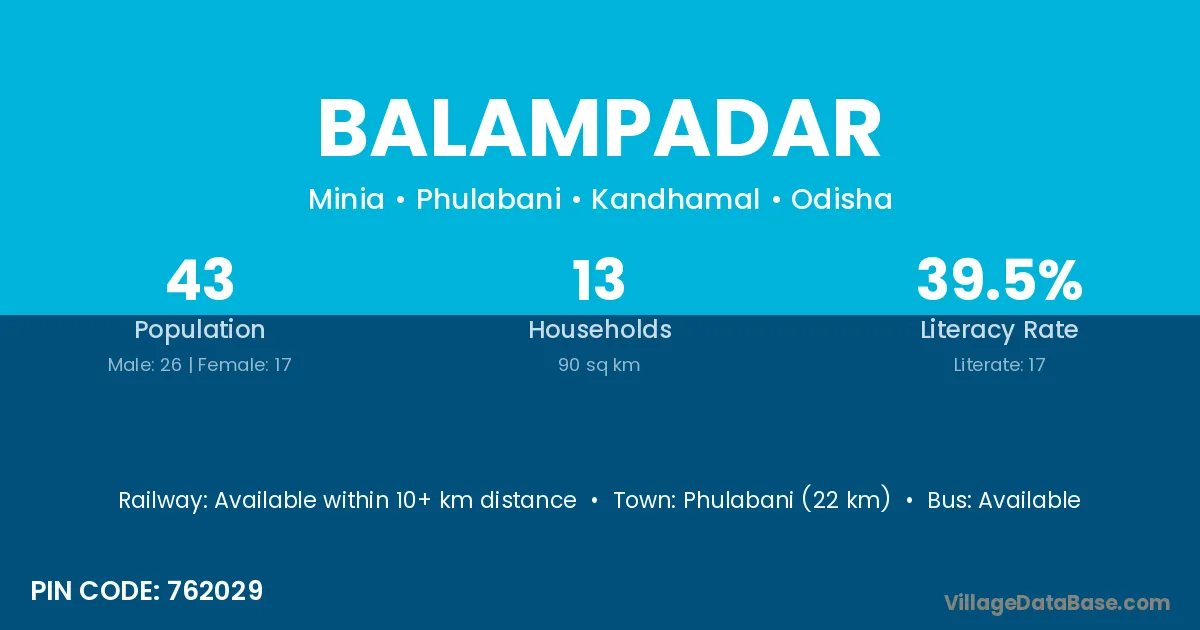 Phulabani (22 km) is the nearest town to Balampadar village for major economic activities and is located approximately 22 km away.