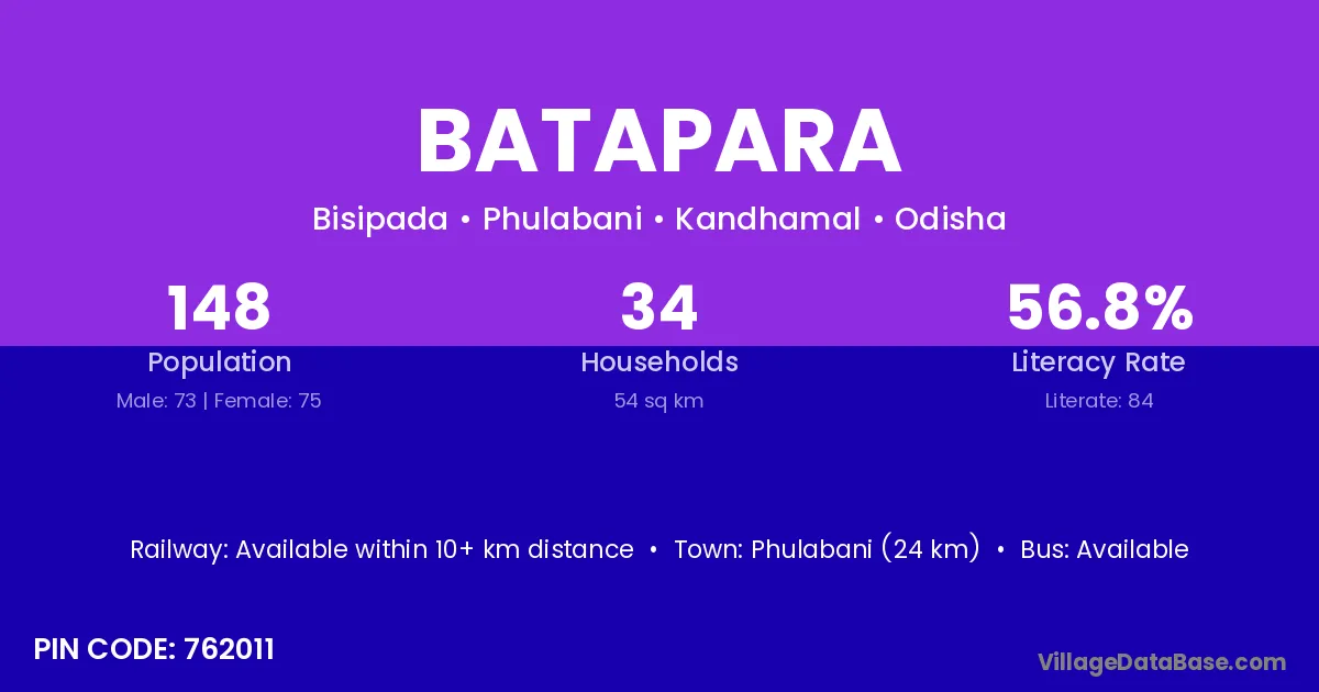 Phulabani (24 km) is the nearest town to Batapara village for major economic activities and is located approximately 24 km away.