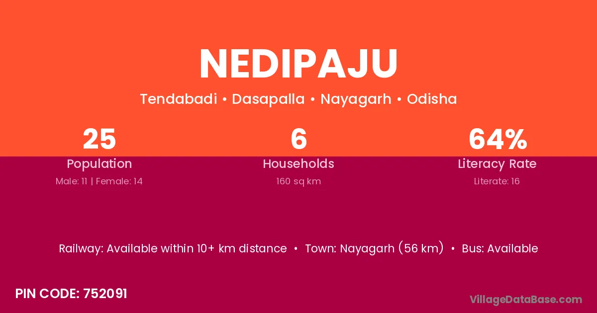 Phulabani (17 km) is the nearest town to Nedipaju village for major economic activities and is located approximately 17 km away.