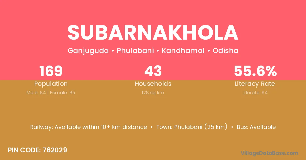 Phulabani (25 km) is the nearest town to Subarnakhola village for major economic activities and is located approximately 25 km away.