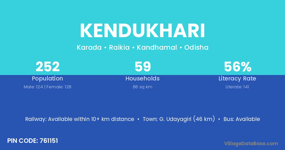 G. Udayagiri (46 km) is the nearest town to Kendukhari village for major economic activities and is located approximately 46 km away.