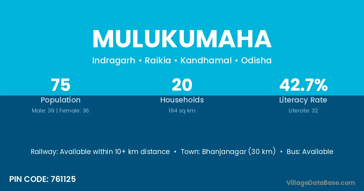 Bhanjanagar (30 km) is the nearest town to Mulukumaha village for major economic activities and is located approximately 30 km away.