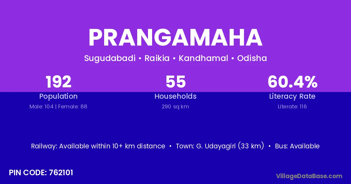 G. Udayagiri (33 km) is the nearest town to Prangamaha village for major economic activities and is located approximately 33 km away.