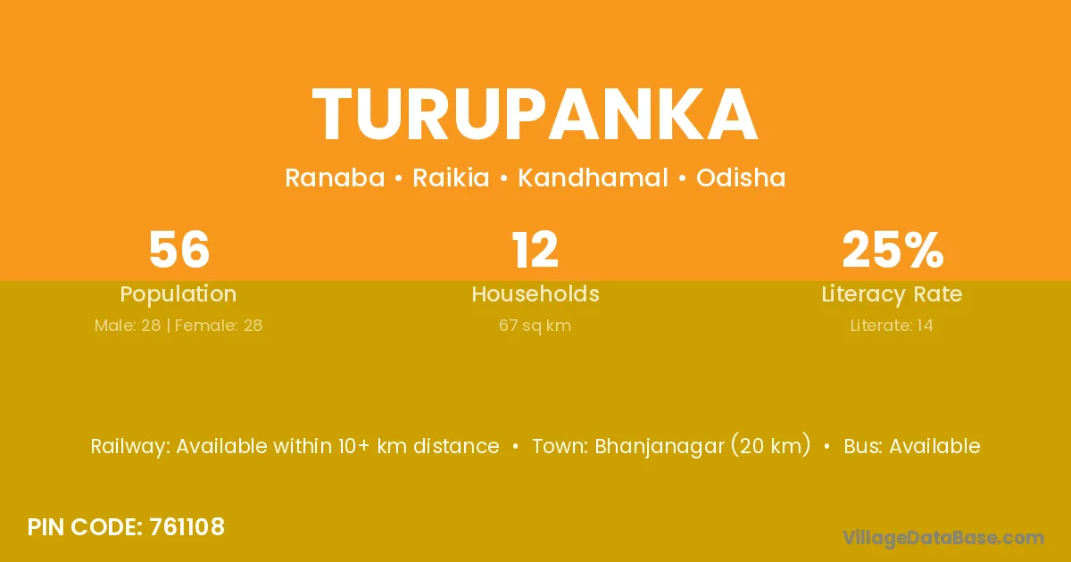 Bhanjanagar (20 km) is the nearest town to Turupanka village for major economic activities and is located approximately 20 km away.