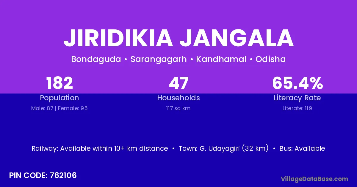 Jiridikia Jangala village is located in the Sarangagarh Tehsil of the Kandhamal district in Odisha .