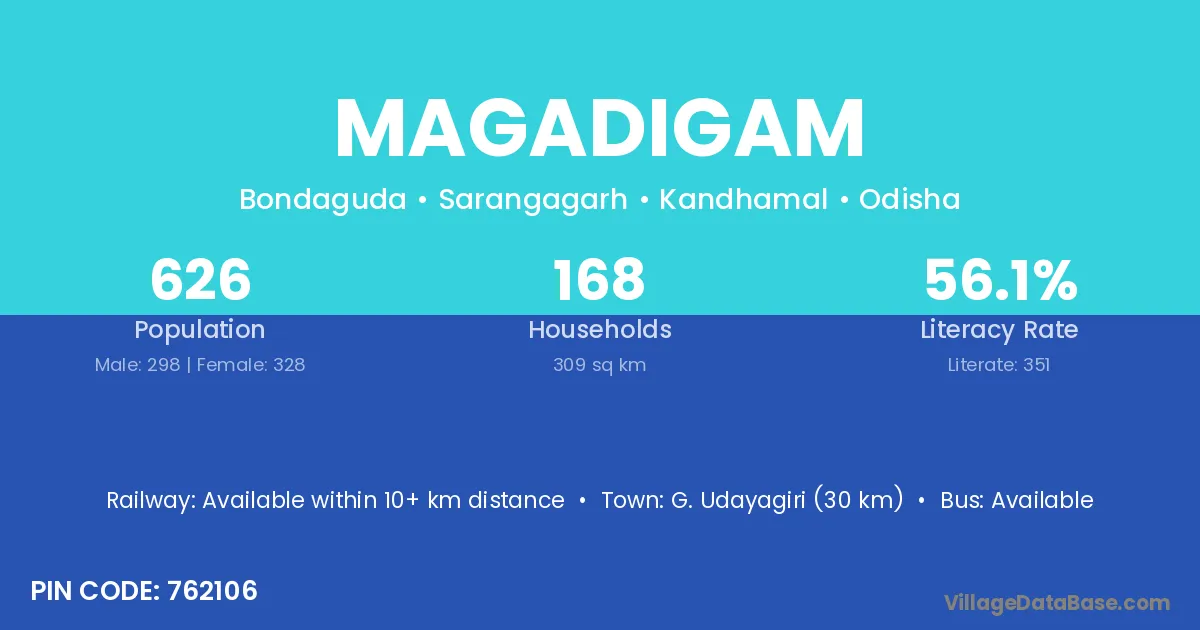 Magadigam village is located in the Sarangagarh Tehsil of the Kandhamal district in Odisha .