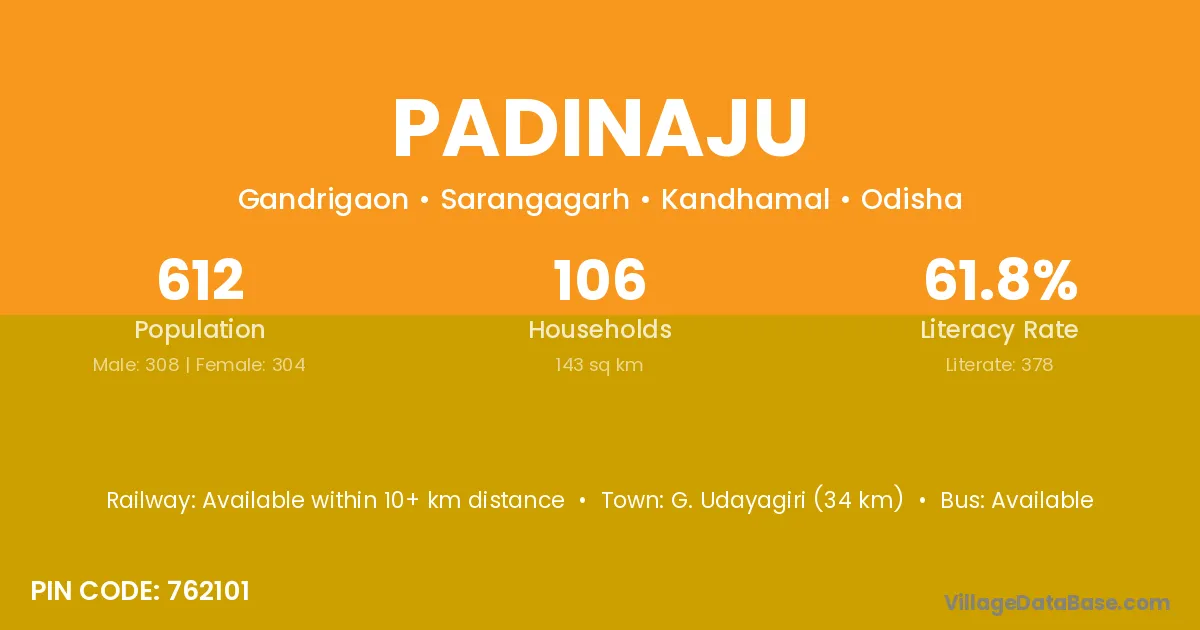 Padinaju village is located in the Sarangagarh Tehsil of the Kandhamal district in Odisha .