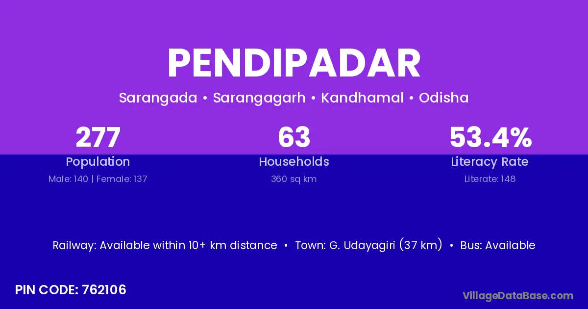 G. Udayagiri (37 km) is the nearest town to Pendipadar village for major economic activities and is located approximately 37 km away.