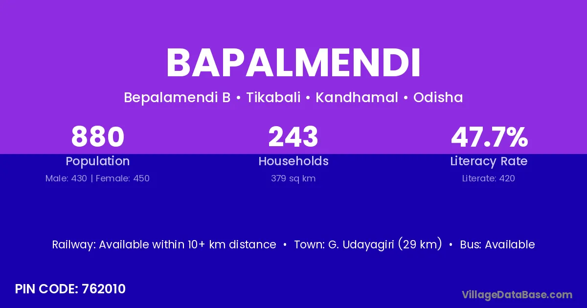 Bapalmendi village is located in the Tikabali Tehsil of the Kandhamal district in Odisha .
