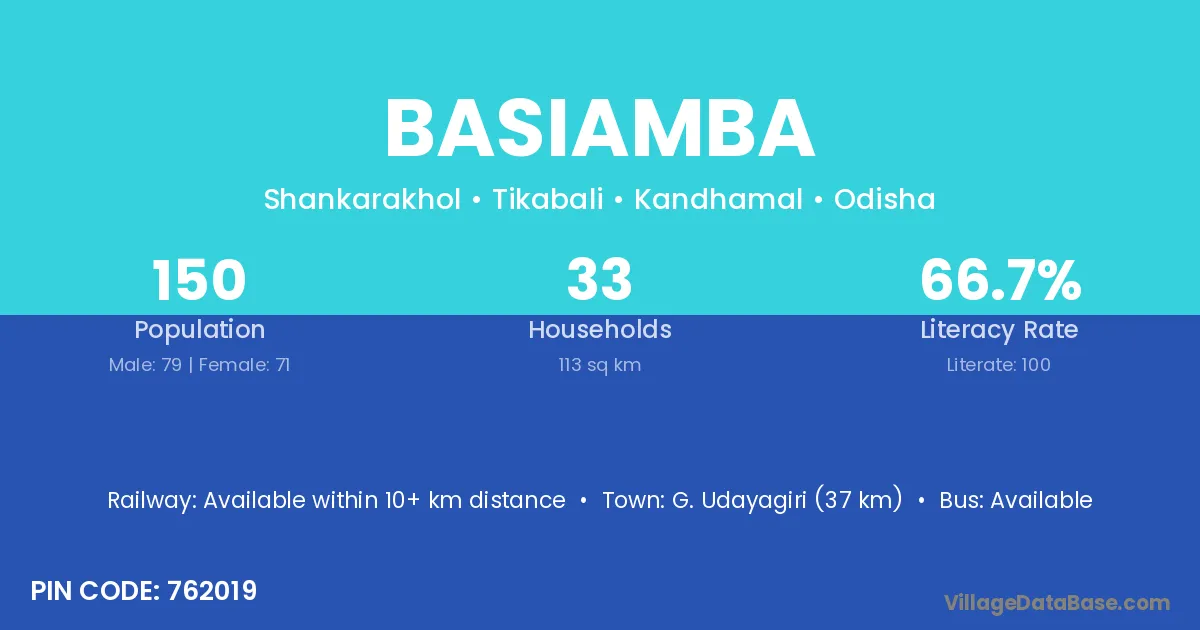 G. Udayagiri (37 km) is the nearest town to Basiamba village for major economic activities and is located approximately 37 km away.