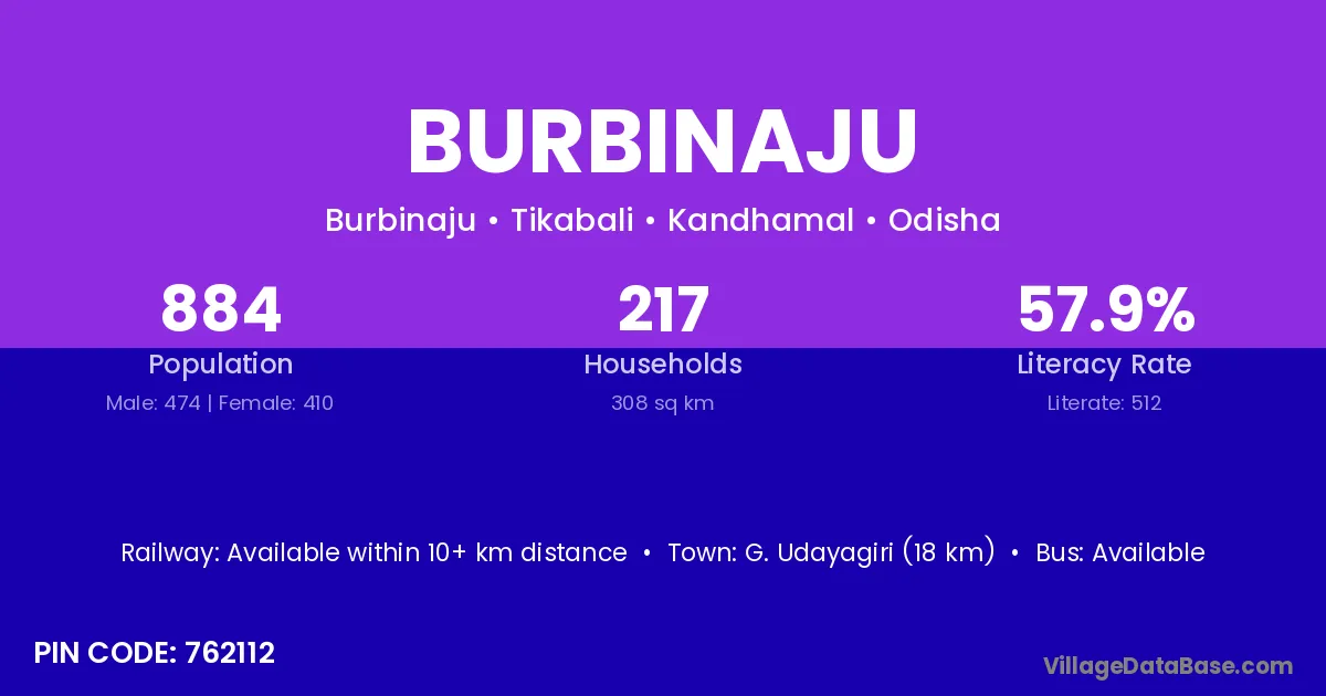 G. Udayagiri (18 km) is the nearest town to Burbinaju village for major economic activities and is located approximately 18 km away.