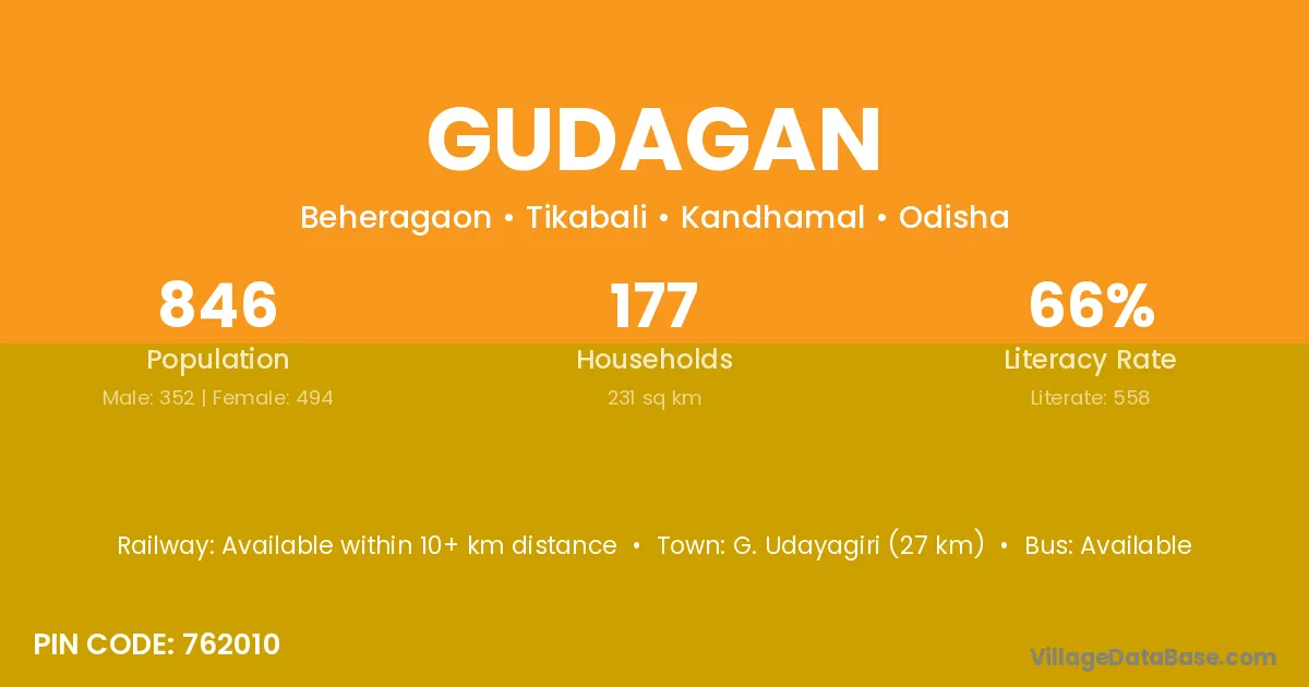 G. Udayagiri (27 km) is the nearest town to Gudagan village for major economic activities and is located approximately 27 km away.