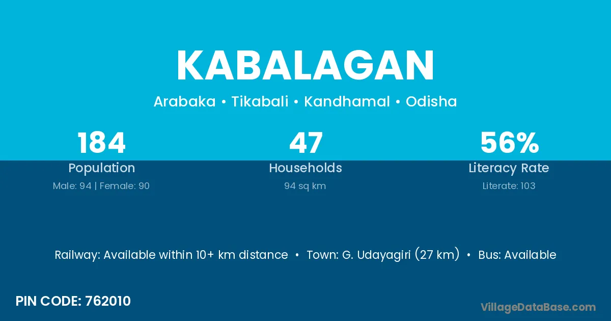 G. Udayagiri (27 km) is the nearest town to Kabalagan village for major economic activities and is located approximately 27 km away.