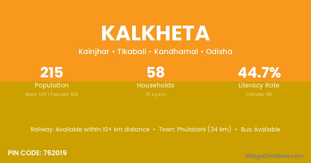 Phulabani (34 km) is the nearest town to Kalkheta village for major economic activities and is located approximately 34 km away.