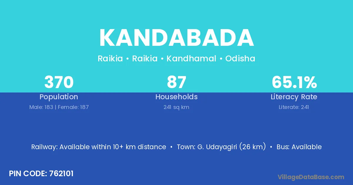 G. Udayagiri (22 km) is the nearest town to Kandabada village for major economic activities and is located approximately 22 km away.